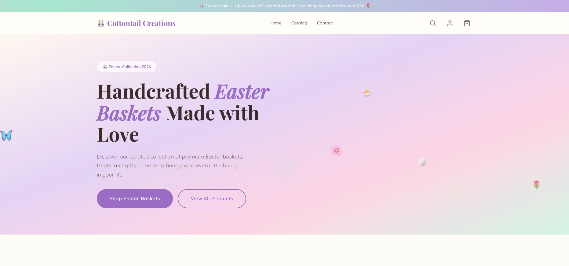 Easter & spring-themed Shopify theme with pastel colors, animations, and conversion-focused design.
